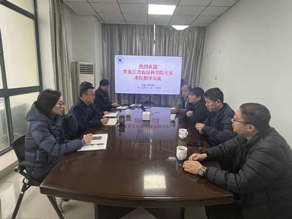12 月 24 日,黑龙江省农垦科学院副院长杜雅刚一行来院考察交流,农业工程研究所副所长崔志富、吴显斌与办公室主任刘瀚泽陪同考察。我院院长楼俊钢、党委书记陈利华、副院长范祥祥热情接待了来访嘉宾,双方就智慧农业技术等相关主题进行了充分座谈。