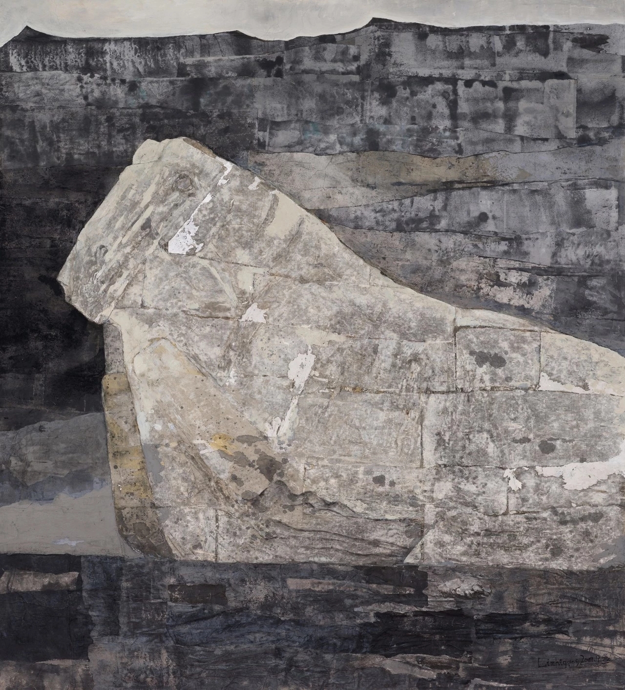 《汉风》作品以西安汉代茂陵大型石雕跃马为创作选题。综合运用浮雕、喷、拓等艺术手法。通过特定的视角,扑面横陈的构图,粗砺的质感,沉雄硕大的体量,力求塑造意象化的视觉形象,传达昂扬向上的雄浑的民族魂魄。《汉风》作为综合材料绘画,参加了第十三届全国美展优秀作品进京展,并被中国美术馆在众多优秀作品中选出确认收藏。