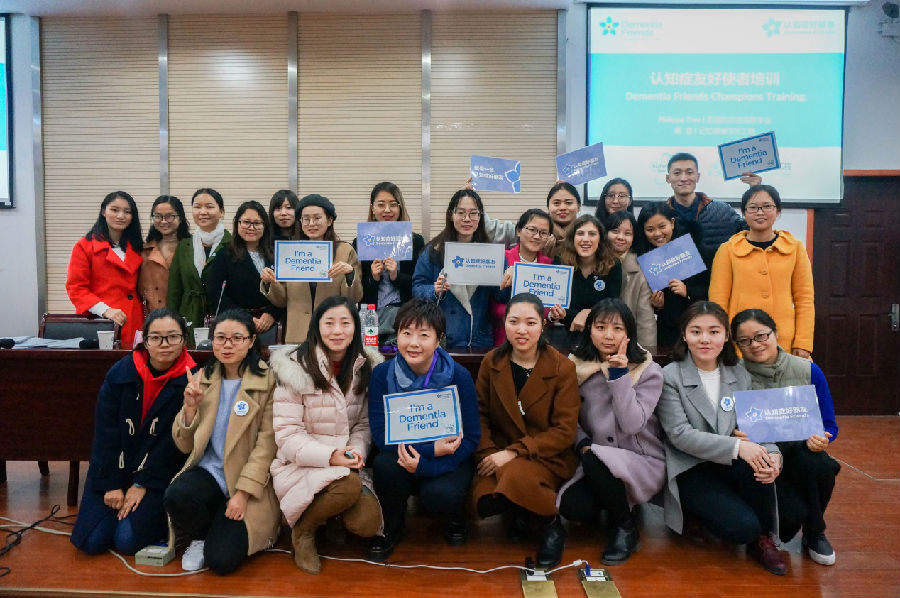 下午,Philippa和洪立在医学院报告厅开展了认知症好朋友信息分享会和认知症友好使者的培训,会议由姚金兰副院长主持。各级在湖研究生、护理系教师、附属医院及社区卫生服务中心的相关专业医生、护士、社区工作人员、社工等100余人参加。分享和培训气氛活跃,师生们踊跃参与,积极互动,纷纷表达了愿意成为认知症好友的愿望和决心。