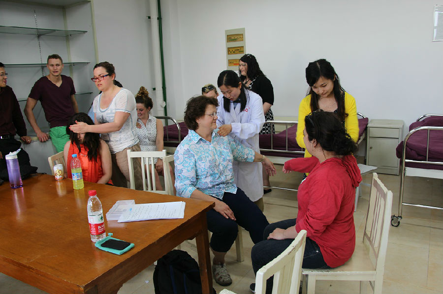 为美国师生示范中医推拿