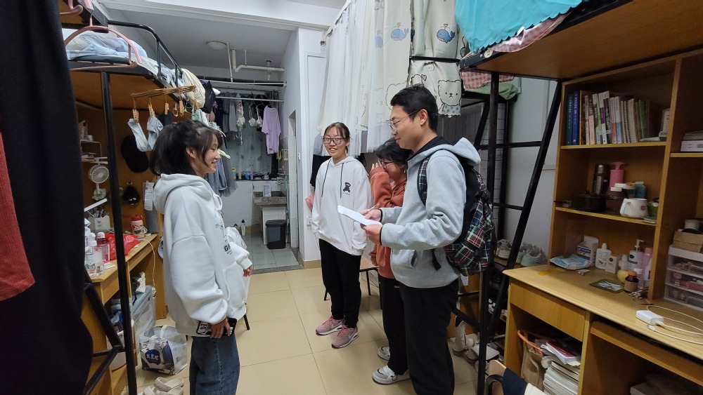 为切实做好学生宿舍的卫生安全工作,增强同学们对安全隐患问题的了解,督促同学们改善宿舍卫生,培养学生自我约束、自我管理的生活习惯,营造一个良好的生活氛围。11月17日晚,学院开展宿舍卫生安全大检查工作,学院党委副书记李战琴,辅导员黄谷村、陈倩倩等参与了本次大检查。
