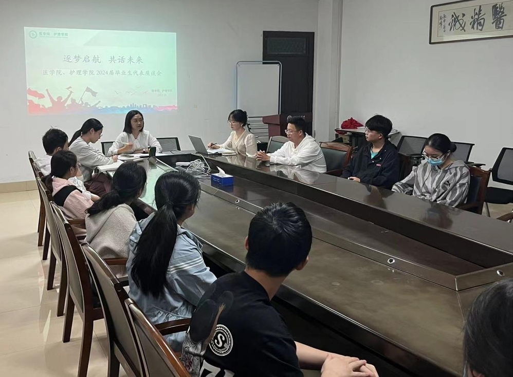 为切实做好2024届毕业生就业对接服务,进一步掌握毕业生的就业现状及期望需求,10月8日晚,医学院、护理学院召开了2024届毕业生代表就业工作座谈会。学院党委副书记许莹莹、研究生辅导员祝丽红、就业辅导员蒋芸红、学院就创部负责人、各毕业班学生代表们齐聚一堂,共话学习生活的感悟收获,畅谈人生未来的发展规划。