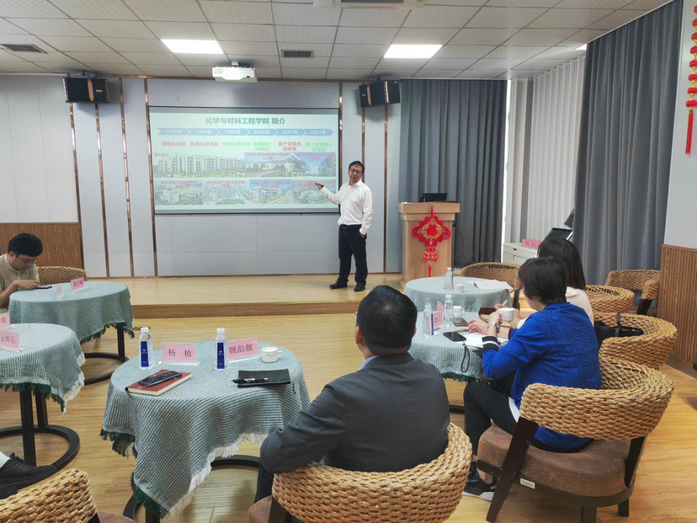在温州大学学化学与材料工程学院,杨植院长热情接待了调研组一行。温州大学化学与材料工程学院现有化学(师范)、应用化学、材料科学与工程、能源化学等4个本科专业;拥有化学一级学科博士学位授权点,化学和材料科学与工程2个一级学科硕士学位授权点,以及学科教学(化学)、资源与环境和材料与化工3个专业硕士学位授权点。杨植院长从师资队伍、学科基础、特色研究领域等方面为调研组做了博士点申报的经验介绍。姚韵靓院长对化材学院的接待表示感谢,并简要介绍了我院的概况、此次考察调研的目的,表示希望以后能在学科上多合作交流。