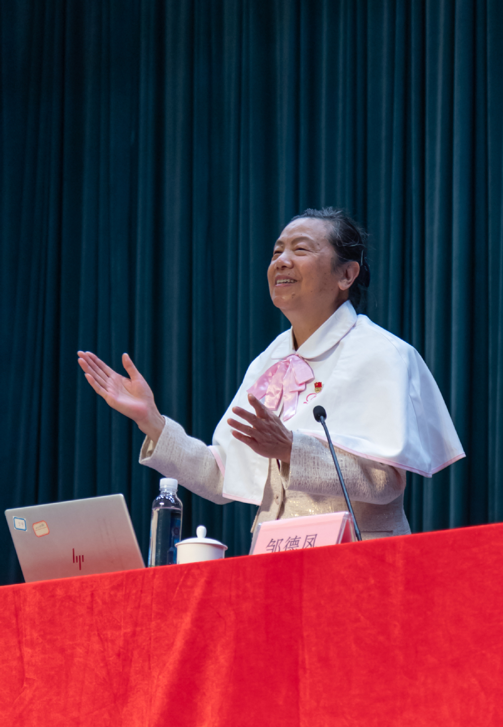 邹德凤以清唱一首歌为开头进入今日讲述的主题,告诉我们不仅要成为二十大精神的传播者,也要成为南丁格尔精神的宣讲者、践行者、传承者。邹德凤结合自身工作和志愿服务经历,饱含深情地讲述了她首创社区护理、在服务流动人口、黔行支教“春晖使者”、健康扶贫等践行党员初心使命的故事。从她叙述的事迹中,无一不展现了舍小家、为大家的奉献精神,深深打动了在场的每一个人,她用实际行动证明和践行了她作为一名共产党员的初心。她对事业的执着坚守,对群众的深厚感情,对党的忠诚坚定,诠释了南丁格尔精神的真谛。朴实无华的语言、平凡感人的事迹让现场师生深受教育,讲座在阵阵热烈的掌声和崇敬的目光中结束。同学们纷纷表示,要始终牢记邹老师“用心、用情、用力”做志愿服务的精神,立足新时代、展现新作为,进一步弘扬人道、博爱、奉献的红十字精神,用自己的实际行动服务社会和人民。
