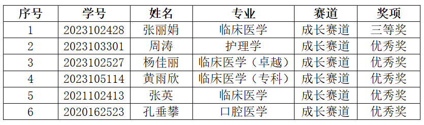 根据《浙江省大学生创新创业大赛组委会关于举办“中行杯”第十四届浙江省大学生职业规划大赛的通知》(浙大创赛组赛组〔2023〕2号)要求、《优米app怎么下载软件第十五届大学生职业规划大赛暨第十四届浙江省职业规划大赛选拔赛》、《关于举办医学院、护理学院第十五届大学生职业规划大赛的通知》等文件精神,经学生本人系统报名,班级推优,学院复赛,学院评审小组研究决定,拟增补2023103301周涛等5名同学获院优秀奖,2023102428张丽娟同学获院三等奖。具体名单附后,排名不分先后。