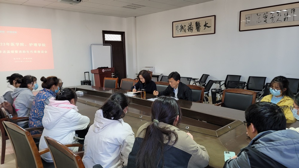 冬半如春暖,疏花满路开。2023年12月8日下午,在26-510会议室举行了“医学院、护理学院冬季送温暖暨资助生代表座谈会”,学院党委书记钮富荣、党委副书记许莹莹、学工办黄谷村老师和十位资助生同学们亲切交流。