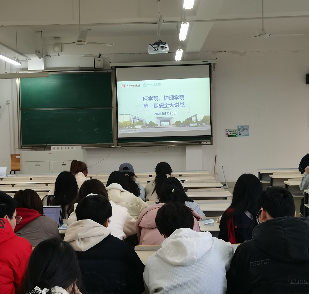 为进一步做好校园安全工作,有效提高学生安全意识,增强安全防范能力,3月20日,医学院、护理学院在32幢301教室举行了安全教育讲座,邀请学校保卫处安全宣讲团成员进行宣讲。