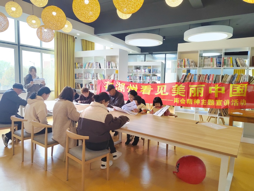 为深入学习宣传习近平新时代中国特色社会主义思想和全国、省、市两会精神,一以贯之忠实践行“八八战略”,进一步发挥理论宣讲统一思想、聚气凝神的作用,2024年327上午学院联合湖州银行城南支行党支部在湖州银行驻浮玉社区“绿色金融  红色代办”共富驿站,组织开展“在湖州看见美丽中国”两会精神主题宣讲活动。