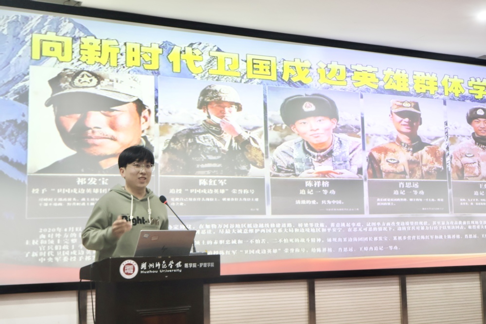 退役军人代表、21级口腔专业学生孙猛分享了他的军旅生活及入伍感受,让同学们深切的感受到了捍卫祖国主权、尊严与领土完整的光荣感与使命感,极大鼓舞了同学们征兵入伍的热情。