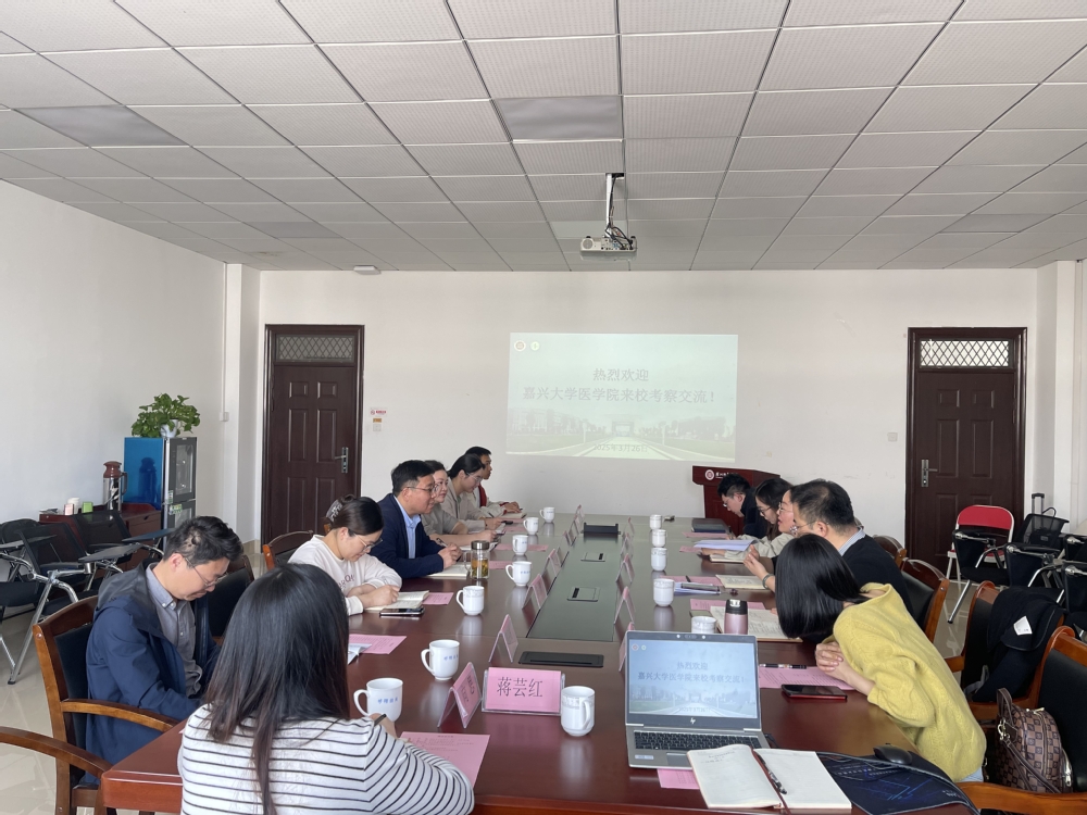 为促进校际协同发展,共谋医学教育高质量发展,3月26日上午,嘉兴大学医学院党委副书记朱莹一行莅临我院专题调研学生工作。学院党委副书记董建新接待朱莹一行,学工办辅导员参加座谈会,双方围绕党建工作、学科竞赛以及高质量就业等工作展开交流讨论。