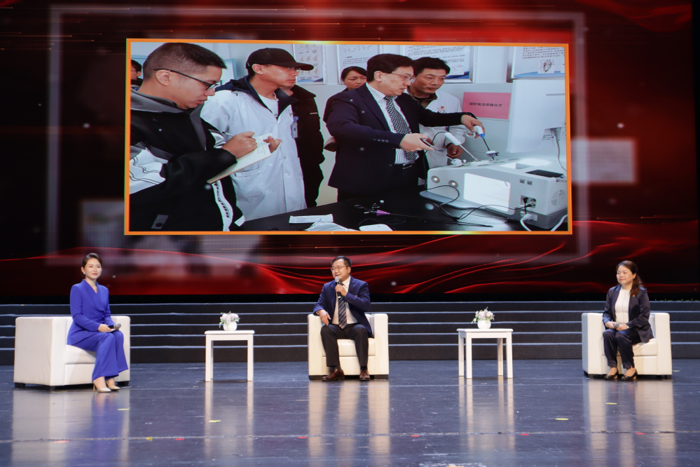 在报告会环节,全体护理同学“同上一堂大思政课”。全国先进工作者、浙江省劳模、附属中心医院党委书记马建明,全国五一劳动奖章获得者、时代楷模、我校优秀校友朱惠芳,“中国好医生”月度人物、附属中心医院纪检监察室主任周玮,“中国好护士”月度人物、附属第一医院党政办主任邹晓月,以及众多坚守基层的一线工作者,分别从各自的岗位出发,结合自身工作经历,用质朴的语言、真实的感悟、鲜活的事例,讲述了他们在平凡的工作岗位上,牢记为民宗旨、强化实干争先的感人事迹。