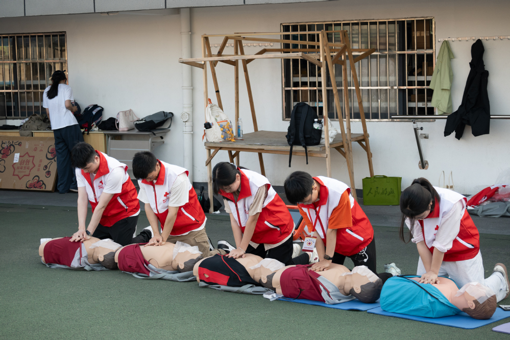 活动沿途精心设置了融合“舒适、健康、治愈、安全”的互动专区。中式按摩体验区以专业手法为疲惫肌肉注入“修复酶”;医学知识打卡点通过趣味问答解锁健康“密码子”;心理互动区则向同学们传递快乐“神经递质”;急救科普区通过心肺复苏演示、AED操作教学等“生命课堂”,让急救技能从指尖传递至心间。