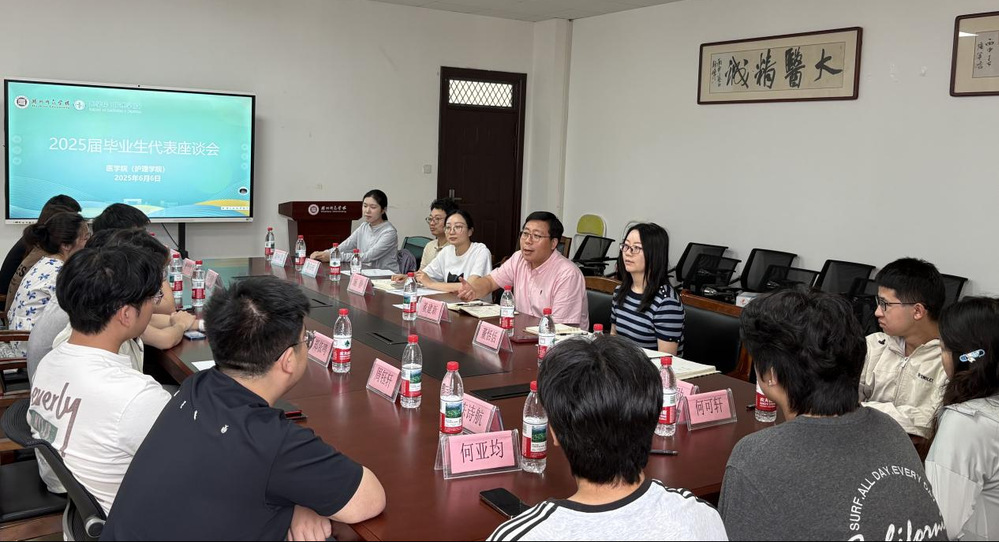 为搭建师生沟通桥梁,全方位倾听毕业生成长感悟与发展诉求,凝聚智慧力量优化育人工作,6月6日上午,医学院(护理学院)召开2025届毕业生代表座谈会。学院党委副书记董建新、教学办和学工办主任、年级辅导员及2025届毕业生代表共同参会。