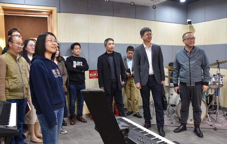 李庆峰副校长对音乐学院的筹建和初建工作进行了充分肯定,并围绕科技平台建设与服务地方能力提升、人才队伍建设、学院综合实力发展等维度进行了深入分析、指导。他强调,新成立的音乐学院以及年轻化的带班团队,在思想上一定要提高站位、扩大格局,在工作上一定要扎实努力、务实创新,在推动标志性项目时一定要整合资源、理性论证。同时,陪同调研的各处室领导也就音乐学院目前推动的相关工作进行了现场办公和指导,重点就琴房大楼、音乐厅、录音棚的维修建设,重点实验室和重点社会服务平台项目的创意策划等工作展开了深入讨论。