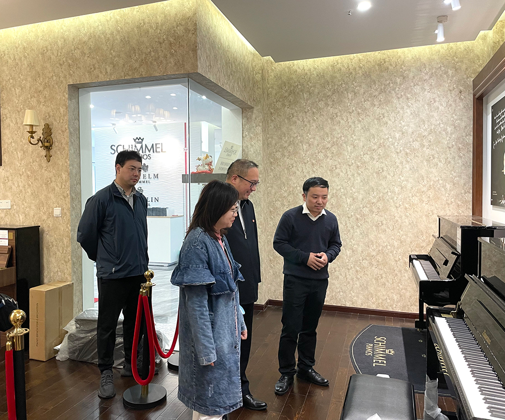 2022年10月9日下午,学院院长、党总支副书记田儿、本科教学工作负责人周媛、艺术实训中心主任闫萍、创新创业与对外联络中心主任李睿浦和副主任孙一波一行六人,前往湖州市留声艺术琴行舒密尔音乐中心考察,参观了中心的营业大厅、琴房、音乐厅,并与留声艺术培训公司的法人朱梦玲、总经理宋向明、合伙人朱喆玮、各分店负责人等进行了座谈。
