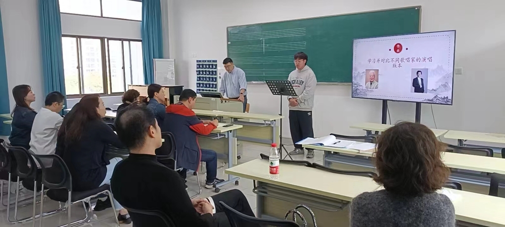 2022年10⽉25⽇,⾳乐学院⾳乐(舞蹈)术科系开展了教学观摩公开教研活动,声乐组全体教师,各系相关负责⼈参与活动,由刘天华老师主讲。