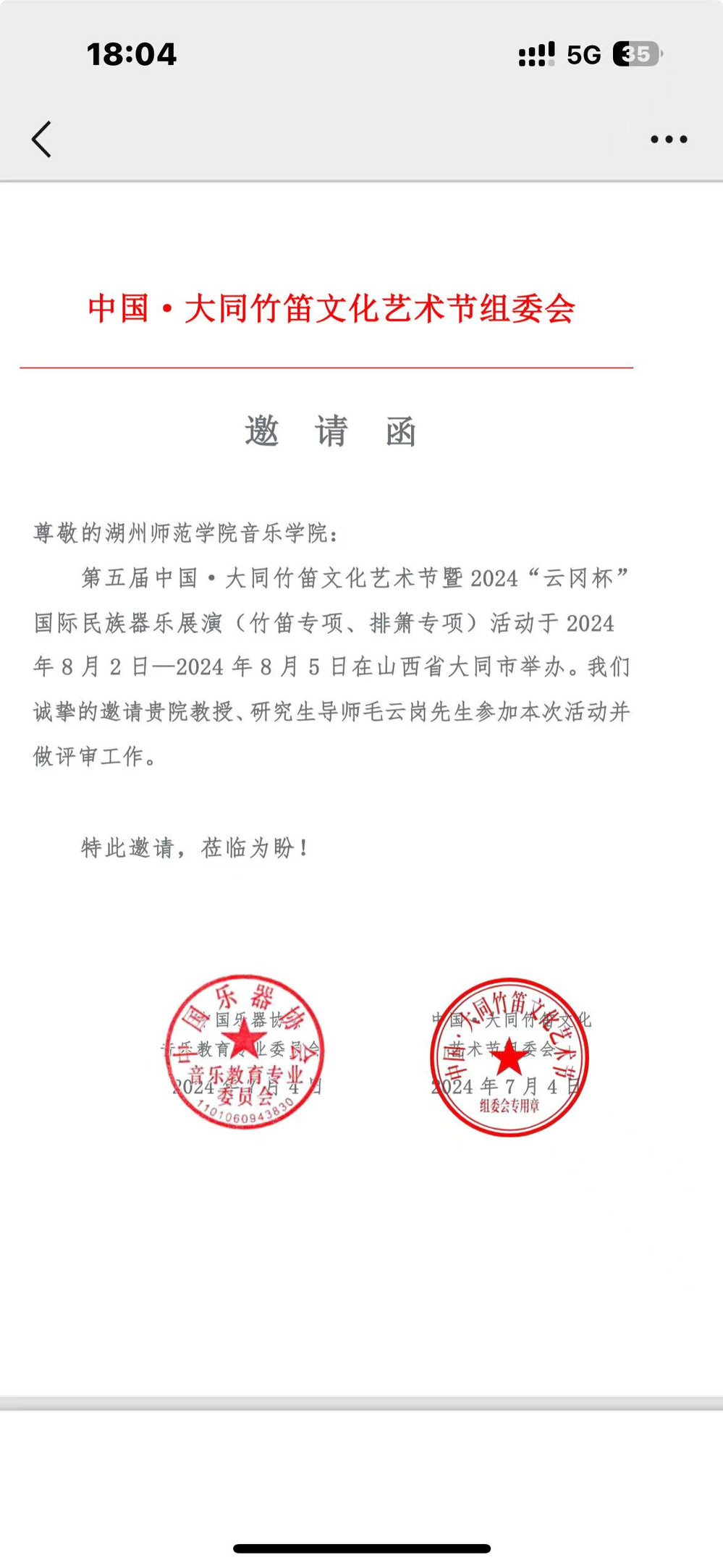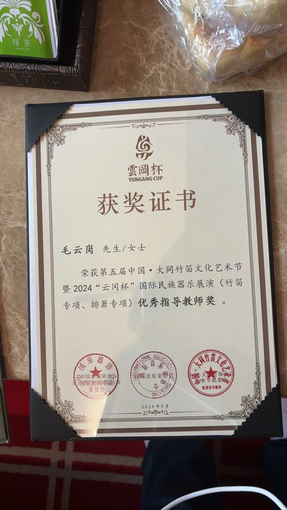 2024年7月27日--2024年8月6日,由中国乐器协会音乐教育专业委员会、 内蒙古自治区文联等单位联合主办的全国“昭君杯”和“云冈杯”民族器乐邀请赛在内蒙古呼和浩特和山西大同隆重举行,我院毛云岗教授应邀担任以上两次大赛专家评委。