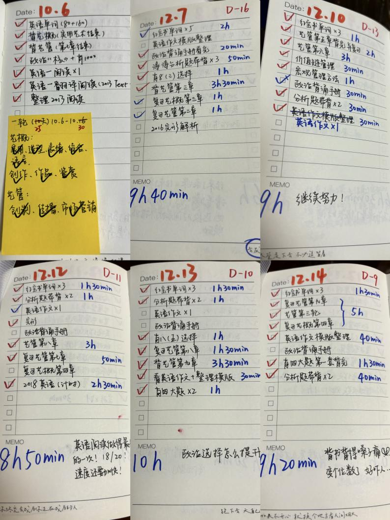 所以,参考我的备考时间规划,学弟学妹们要注意在备考时合理规划整体时间,根据自己的情况,从每月计划到每日计划都要安排规划到位,按时完成,不要拖延!另外,我在考研期间咳嗽发烧了好几次,很耽误学习时间,学弟学妹们在备考期间也要保护好身体,规律作息,适当锻炼身体,提高免疫力!