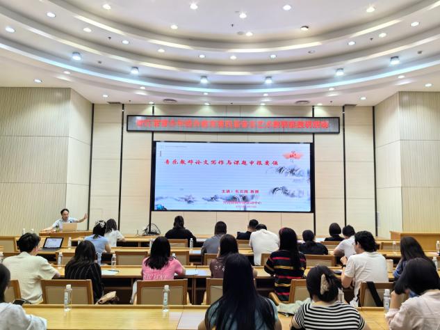 共青团浙江省委浙江省青少年校外教育专业教研组主办的“2025年上半年浙江省青少年校外教育专业教研组教研活动于5月14-16日在安吉县青少年活动中心举行,我院毛云岗教授应邀为前来参加活动的全省各地50余位青少年宫音乐教师做了题为《校外教育音乐教师科研论文写作与课题申报要领》的学术讲座。在讲座中毛教授结合经典案例,针对音乐课题申报、论文撰写要领、选题范围推介和音乐类课题申报的必备条件进行了深入浅出的讲解,并现场解答各位老师所提出的问题,场内学术氛围浓厚。