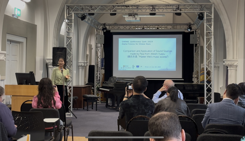 2025年7月6日,在爱尔兰科克举行的CHIME国际学术会议上,我院林舒瑜博士应邀参会,发表了题为《明代魏氏乐谱琵琶音源的对比与应用》的专题报告,公开基于明代魏氏乐谱的数字化琵琶音源库Pipa1617。这项突破性研究通过现代采样技术成功复原明代琵琶音色,引发了学界对传统音乐数字化发展的广泛讨论。