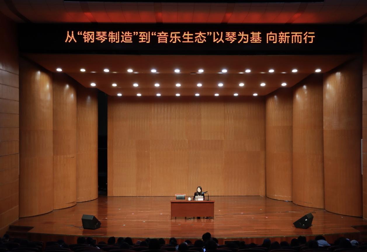 于富瑜女士深耕钢琴制造与乐器行业管理 20 年,兼具高级调律师、乐器设计师等专业资质,她以 “从‘钢琴制造’到‘音乐生态’—— 以琴为基,向新而行” 为核心,从行业发展趋势、企业用人需求、创新创业方向等多个维度,为我们带来了极具针对性和启发性的指导,既有宏观的行业洞察,又有微观的实践建议,让我们对音乐领域的就业与创新创业前景有了更清晰的认识,也为大家解决了不少职业规划中的困惑。引导同学们在音乐教育与艺术产业的融合发展中找准定位,如何将专业所长转化为创新创业的核心动力。
