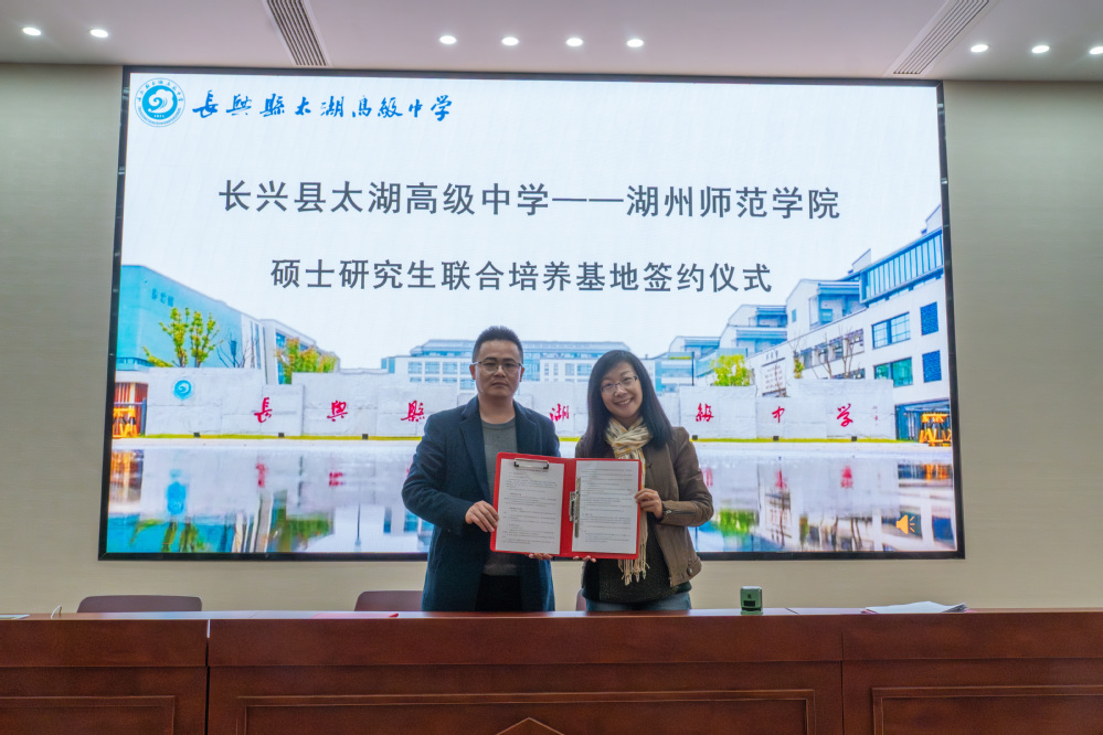 12月11日上午,我院副院长鲁立带队,学术副院长漆明镜及相关工作人员一行赴长兴县太湖高级中学,共同举行硕士研究生联合培养基地签约仪式。太湖高级中学党委书记曹鑫辉、副校长章泽出席活动。