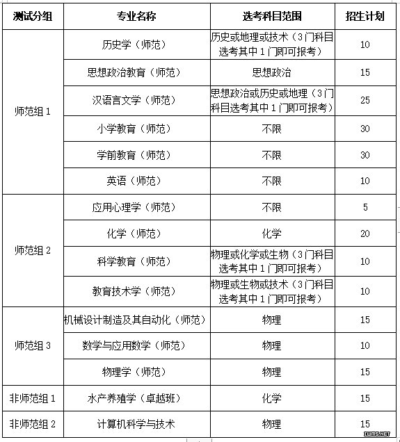 注:考生报考时须符合所报专业的选考科目范围要求,否则不予报考和录取;报名时,每位考生只能选择一个专业,以确定测试分组。高考填报志愿时不能改变测试分组,不可跨组填报;在选考科目范围符合要求的前提下,各测试组内专业可兼报。