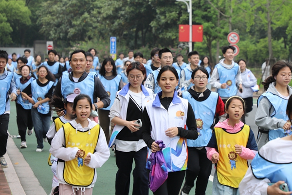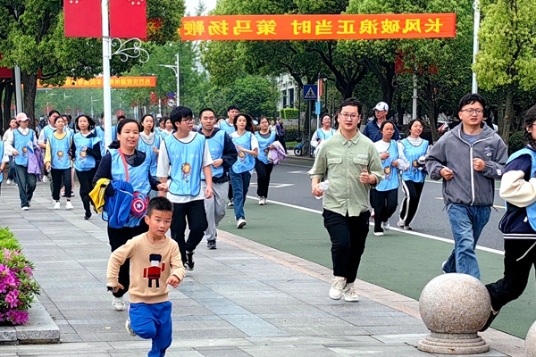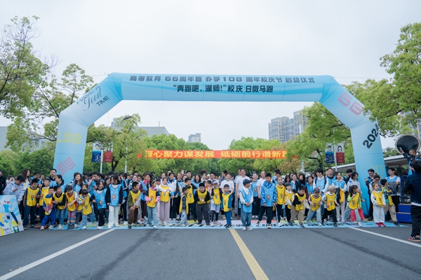 仪式结束后,陈永华宣布“奔跑吧,湖师!”。现场66组校友亲子和1500余名师生从恩泽碑出发,沿明达路途径时光隧道、校训广场、数字图书馆、南浔河、德清湖畔等站点至东校区操场,携手前进享奔跑乐趣,用奔跑展望学校更加辉煌的明天。