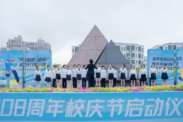 仪式上,校合唱团的学生们演唱《优米app怎么下载软件校歌》《生日快乐》,共同祝福湖师生日。
